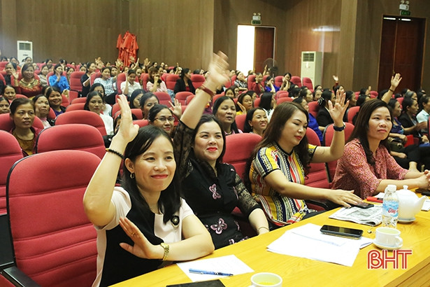 Hình ảnh chị em phụ nữ xếp hàng ngay ngắn, giơ tay tạo hình trái tim đồng điệu trong khán phòng lớn đã tạo nên một biểu tượng đẹp đẽ của tinh thần học tập, đoàn kết và quyết tâm thay đổi.